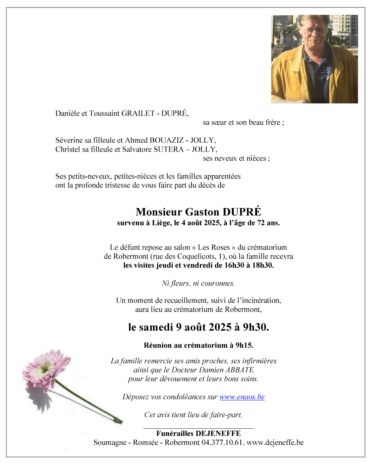 Décédé à Liège (4000, Belgique) le lundi 4 août 2025 à l'âge de 72 ans