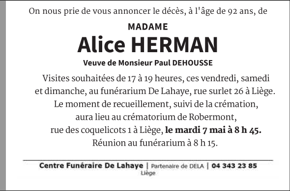 Madame Alice HERMAN