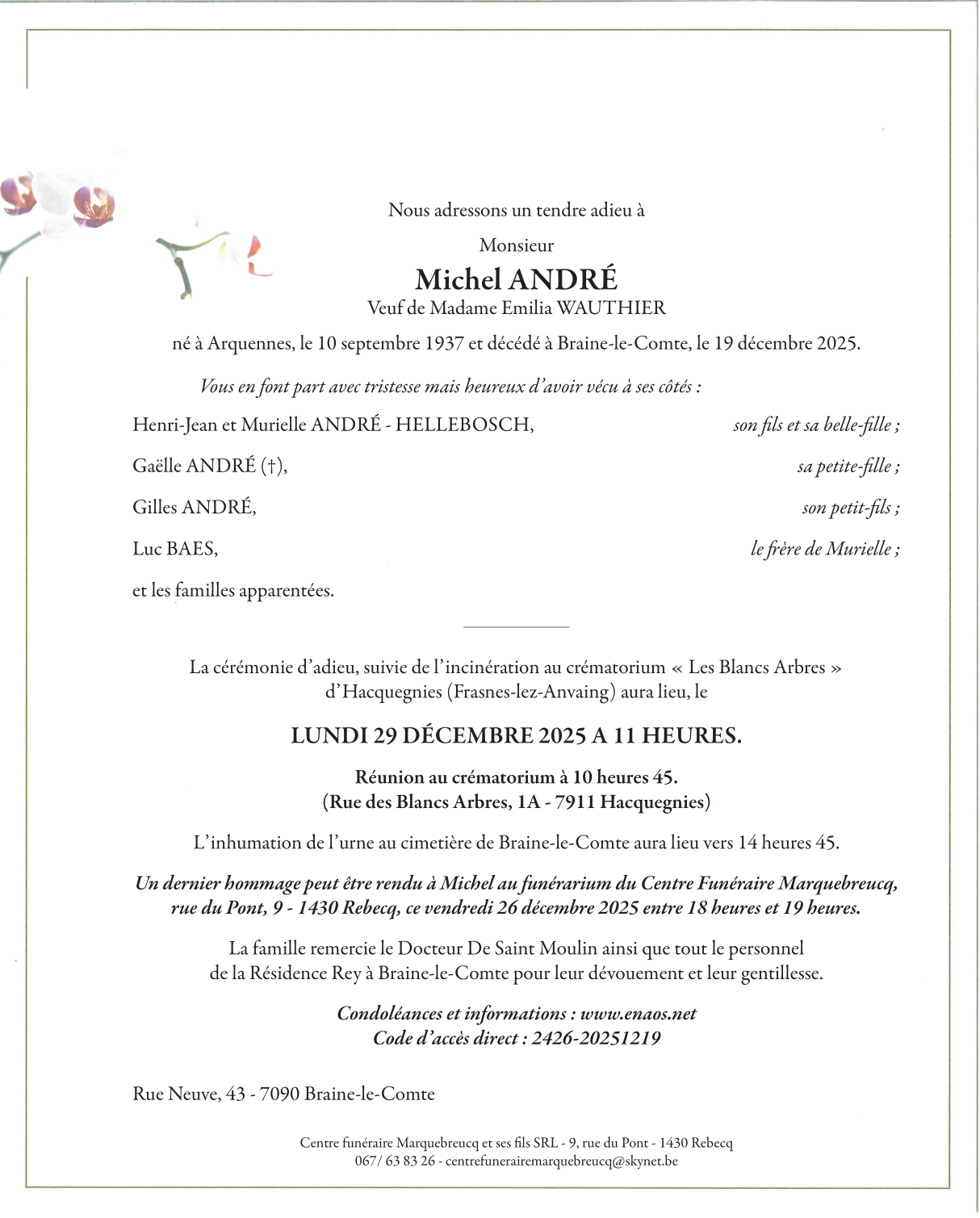 Décédé à Braine-le-Comte (7090, Belgique) le vendredi 19 décembre 2025 à l'âge de 88 ans