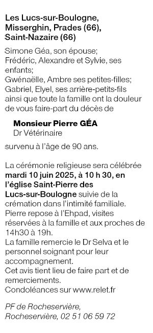 Décédé à Les Lucs-sur-Boulogne (85170, France) le vendredi 6 juin 2025 à l'âge de 90 ans