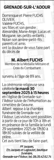 Fallecido en Saint-Sever (40500, Francia) el miércoles, 24 de septiembre de 2025 a la edad de 89 años