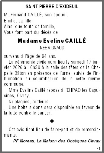 Madame Eveline CAILLÉ née VIGNAUD
