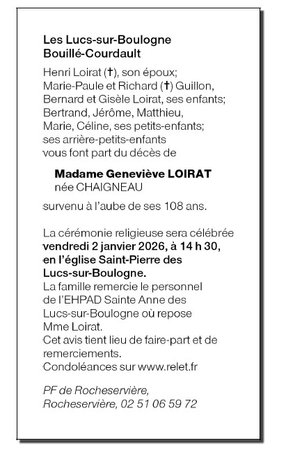 Madame Geneviève LOIRAT née CHAIGNEAU