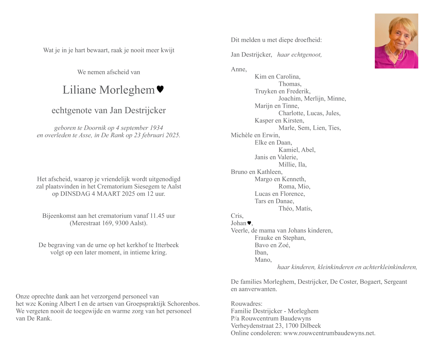Décédée à Asse (1730, Belgique) le dimanche 23 février 2025 à l'âge de 90 ans