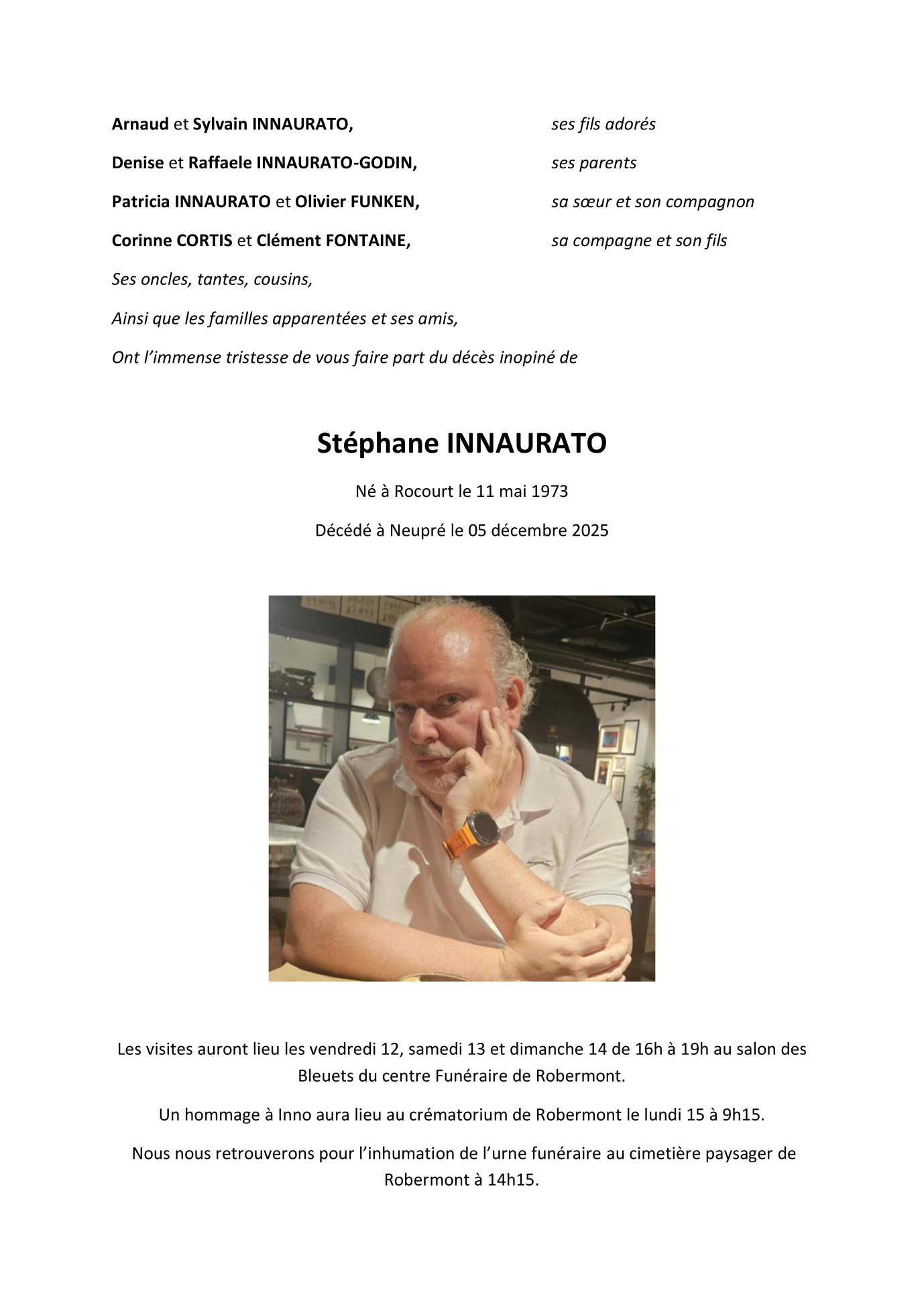 Décédé à Neupré (4120, Belgique) le vendredi 5 décembre 2025 à l'âge de 52 ans