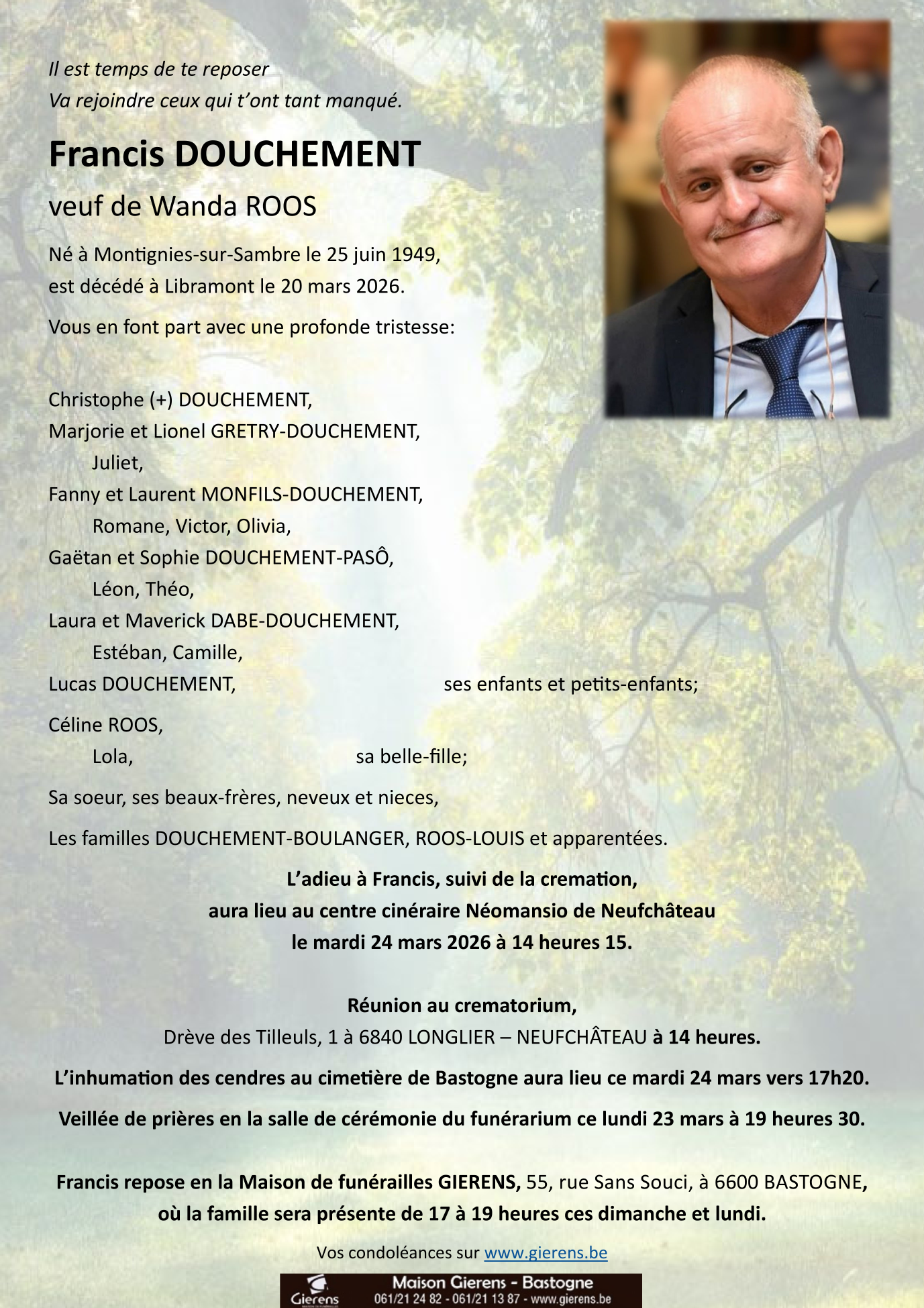 Décédé à Libramont-Chevigny (6800, Belgique) le vendredi 20 mars 2026 à l'âge de 76 ans