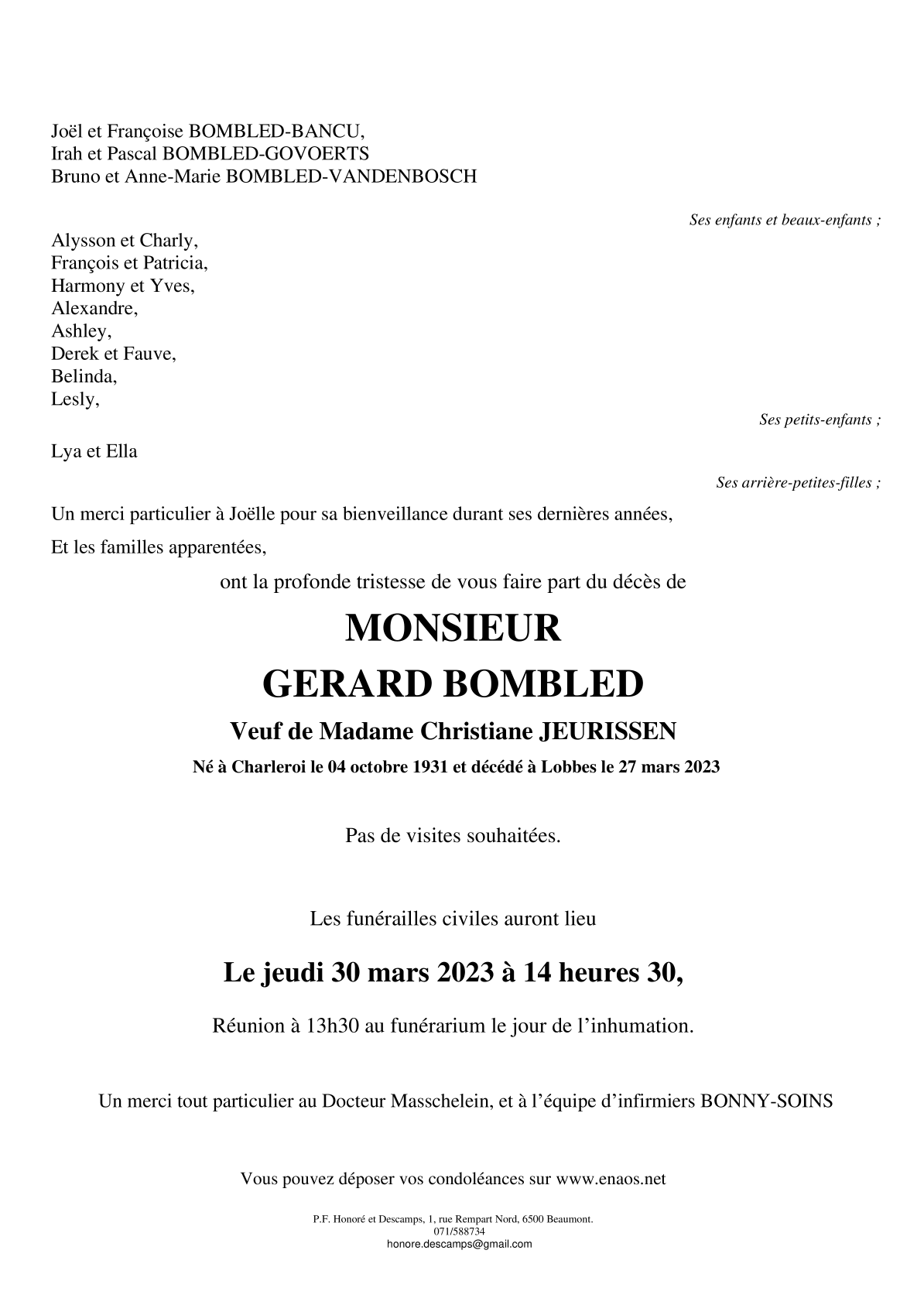 Fallecido en Lobbes (6540, Bélgica) el lunes, 27 de marzo de 2023 a la edad de 91 años