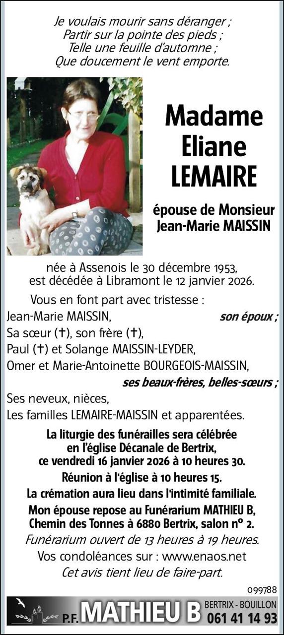 Madame Eliane LEMAIRE