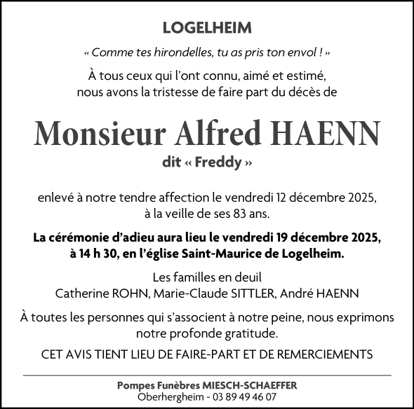 Décédé à Colmar (68000, France) le vendredi 12 décembre 2025 à l'âge de 82 ans