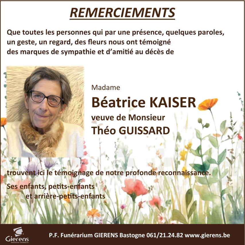 Née à Bastogne (6600, Belgique) le mercredi 24 mars 1943