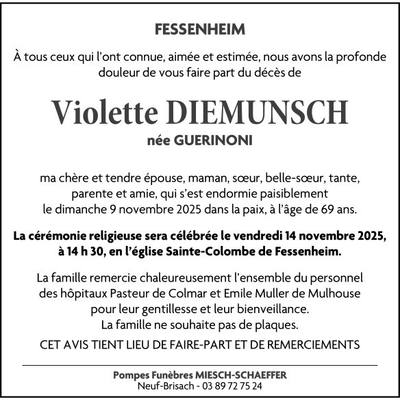 Madame Violette DIEMUNSCH née GUERINONI