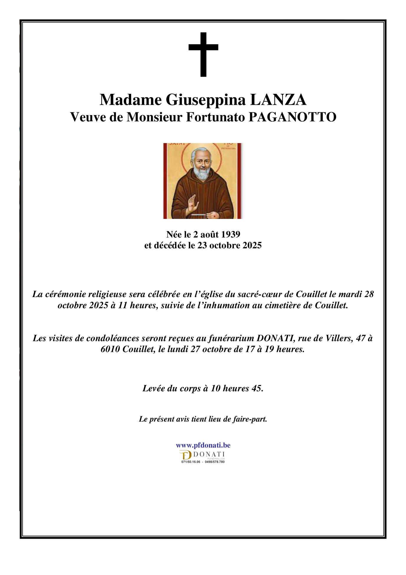 Décédée à Gilly (6060, Belgique) le jeudi 23 octobre 2025 à l'âge de 86 ans