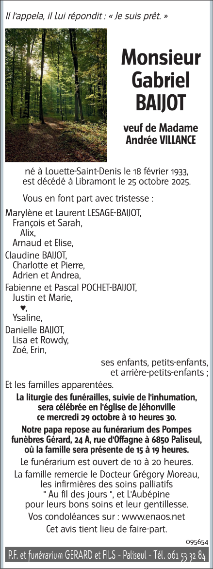 Died in Libramont (6800, Belgium) on 25 October 2025 at the age of 92 years