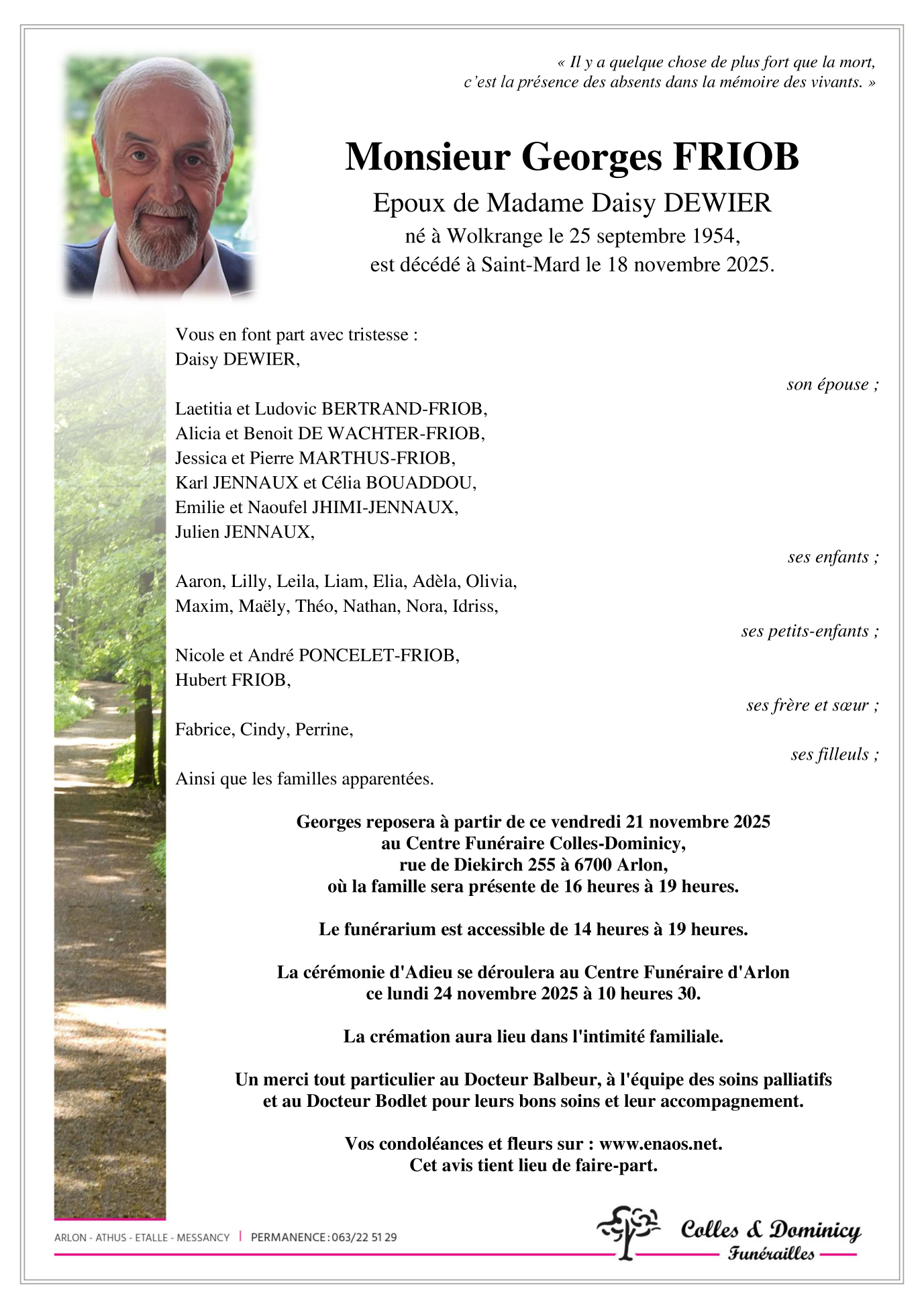 Died in Saint-Mard (6762, Belgium) on 18 November 2025 at the age of 71 years