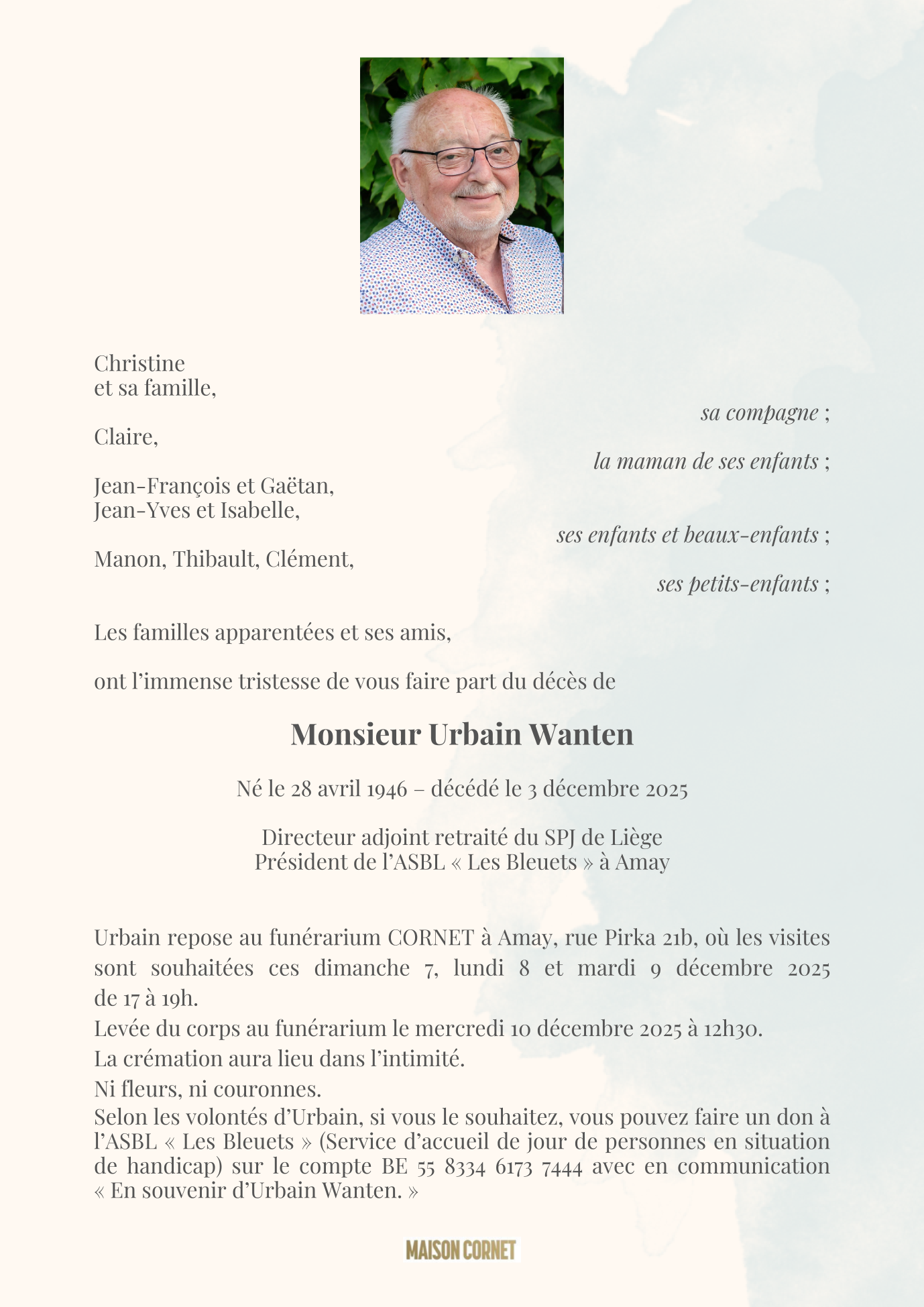 Overleden te Huy (4500, België) op woensdag 3 december 2025 op 79-jarige leeftijd