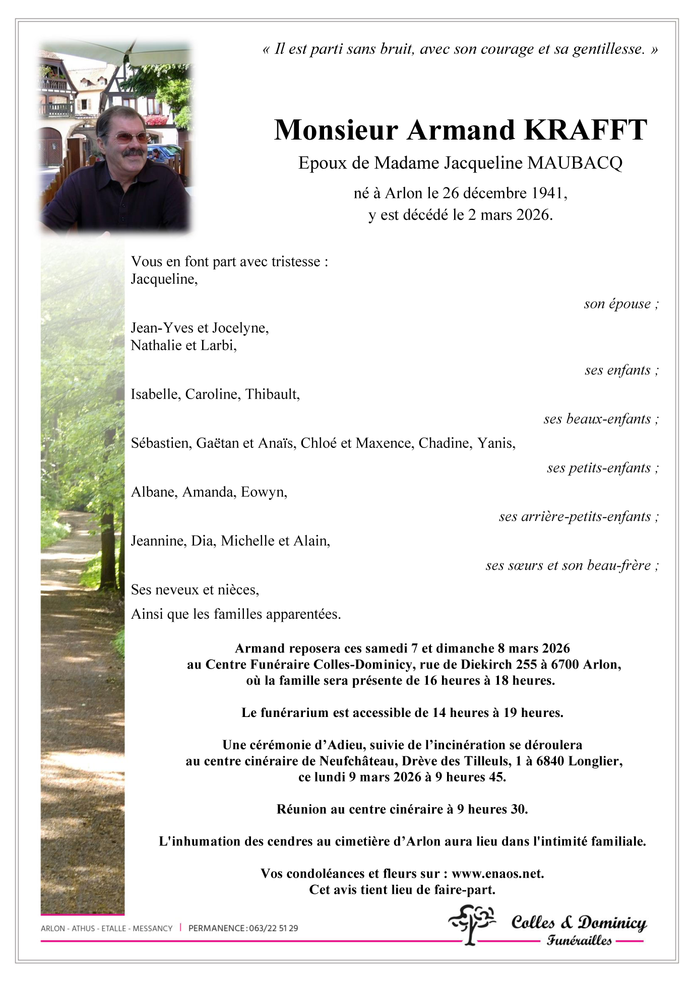 Fallecido en Arlon (6700, Bélgica) el lunes, 2 de marzo de 2026 a la edad de 84 años
