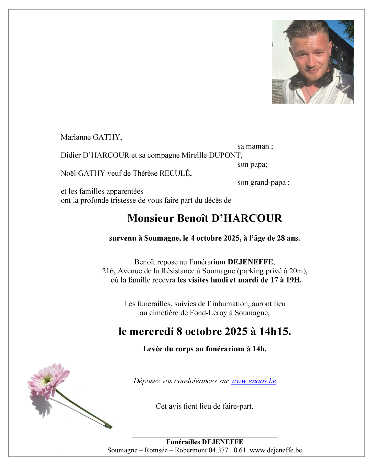 Décédé à Soumagne (4630, Belgique) le samedi 4 octobre 2025 à l'âge de 28 ans