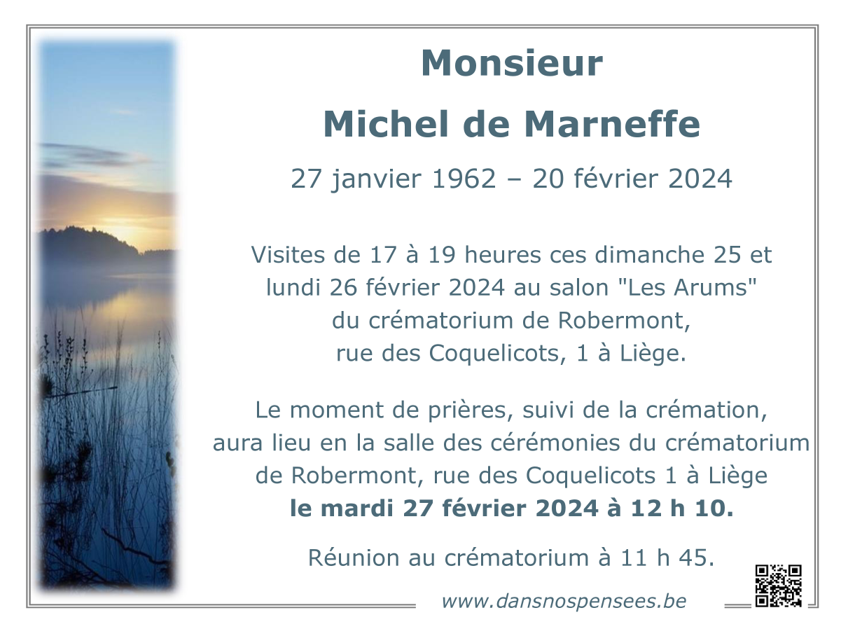 Died in Liège (4000, Belgium) on 20 February 2024 at the age of 62 years