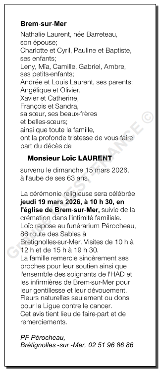 Fallecido en Brem-sur-Mer (85470, Francia) el domingo, 15 de marzo de 2026 a la edad de 62 años