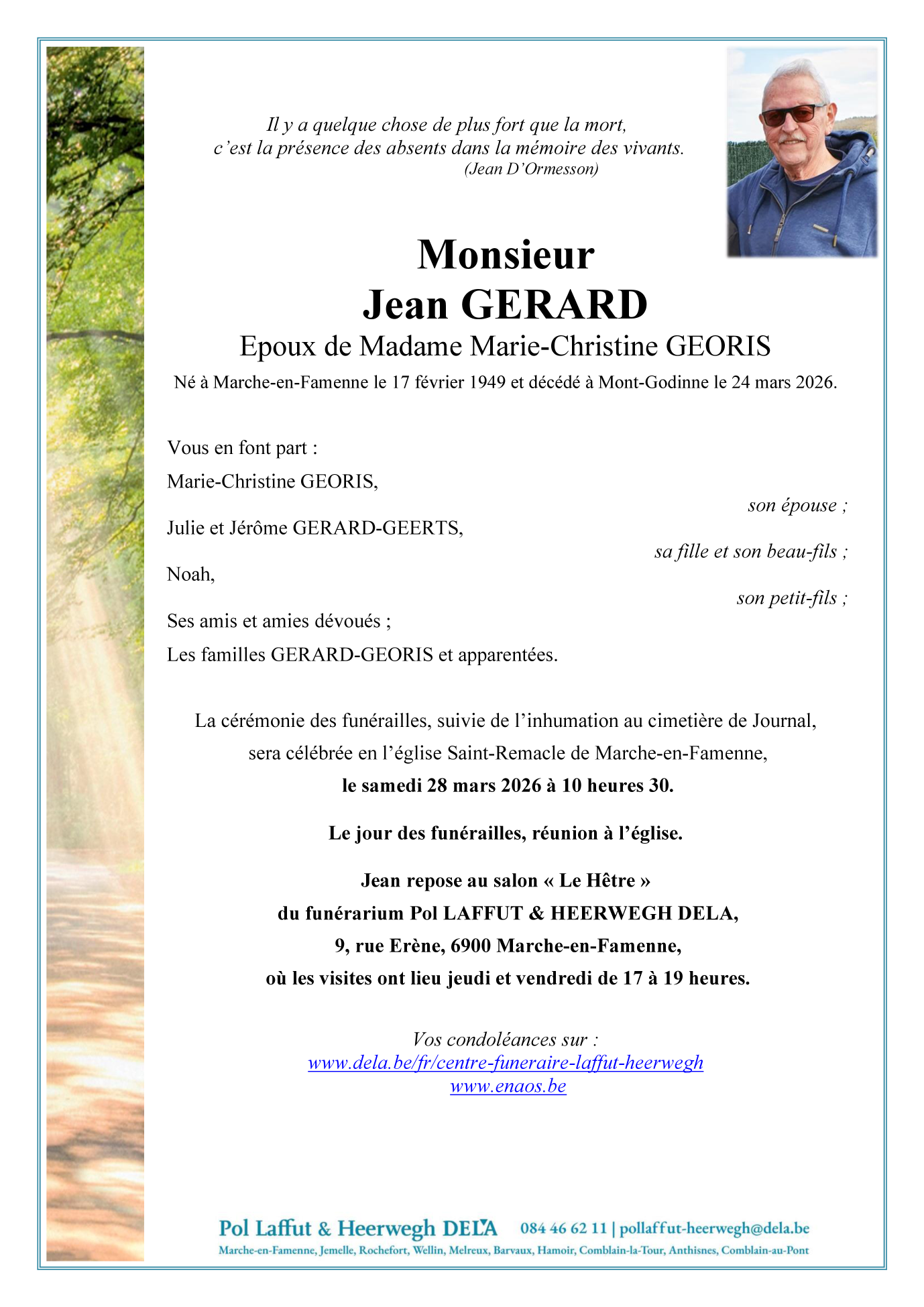 Décédé à Mont-Godinne (5530, Belgique) le mardi 24 mars 2026 à l'âge de 77 ans