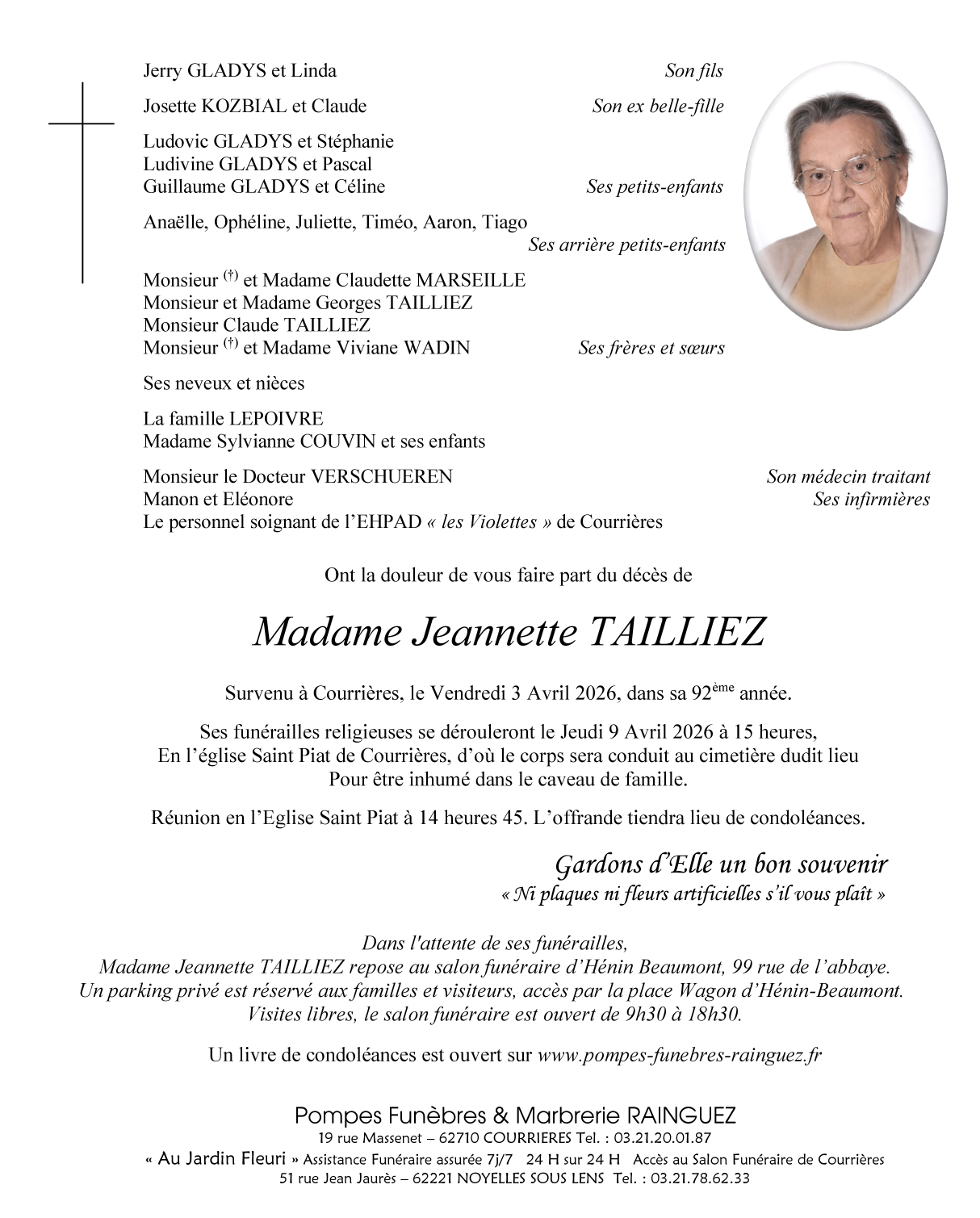 Died in Courrières (62710, France) on 03 April 2026 at the age of 91 years