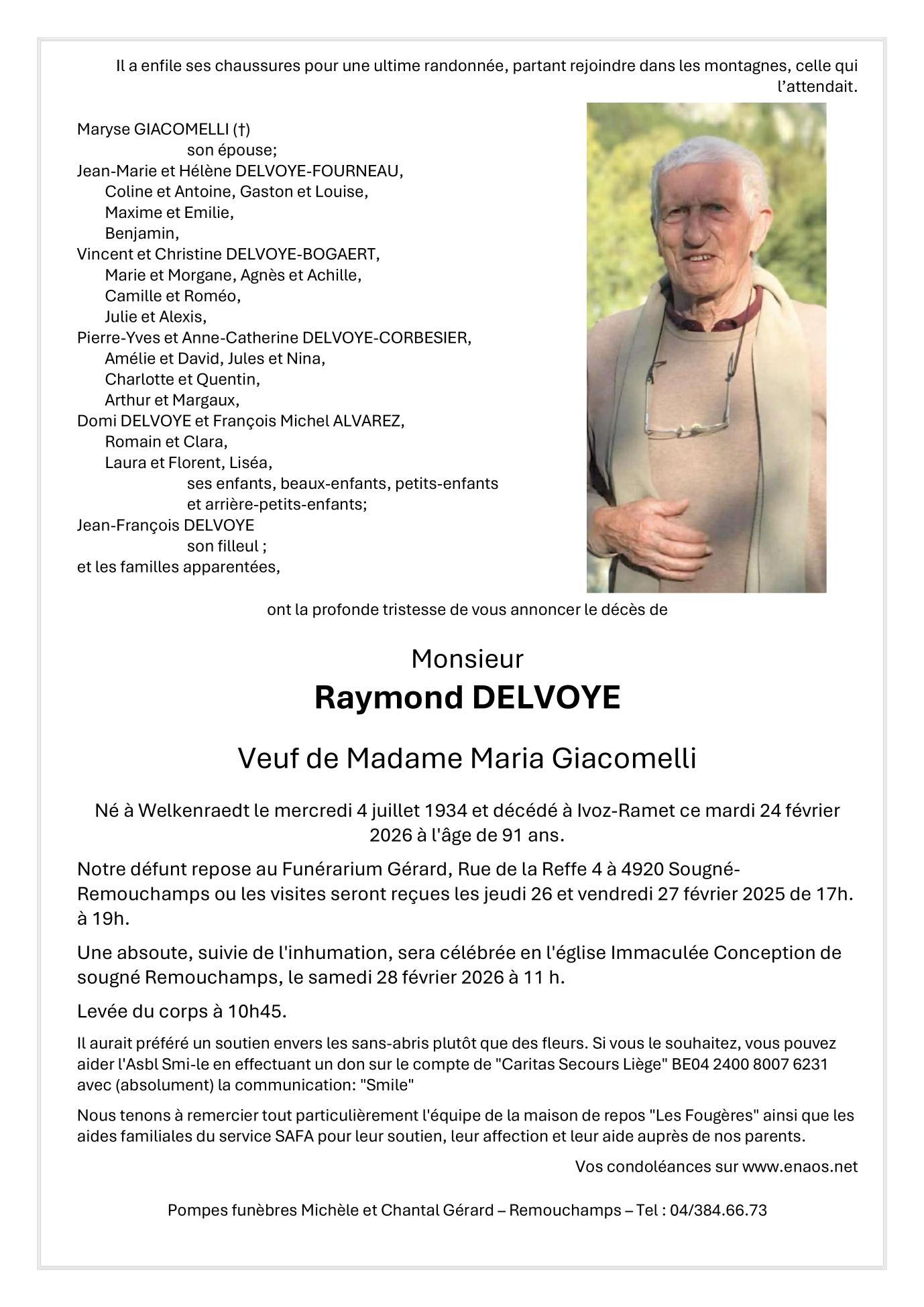 Overleden te Ivoz-Ramet (4400, België) op dinsdag 24 februari 2026 op 91-jarige leeftijd
