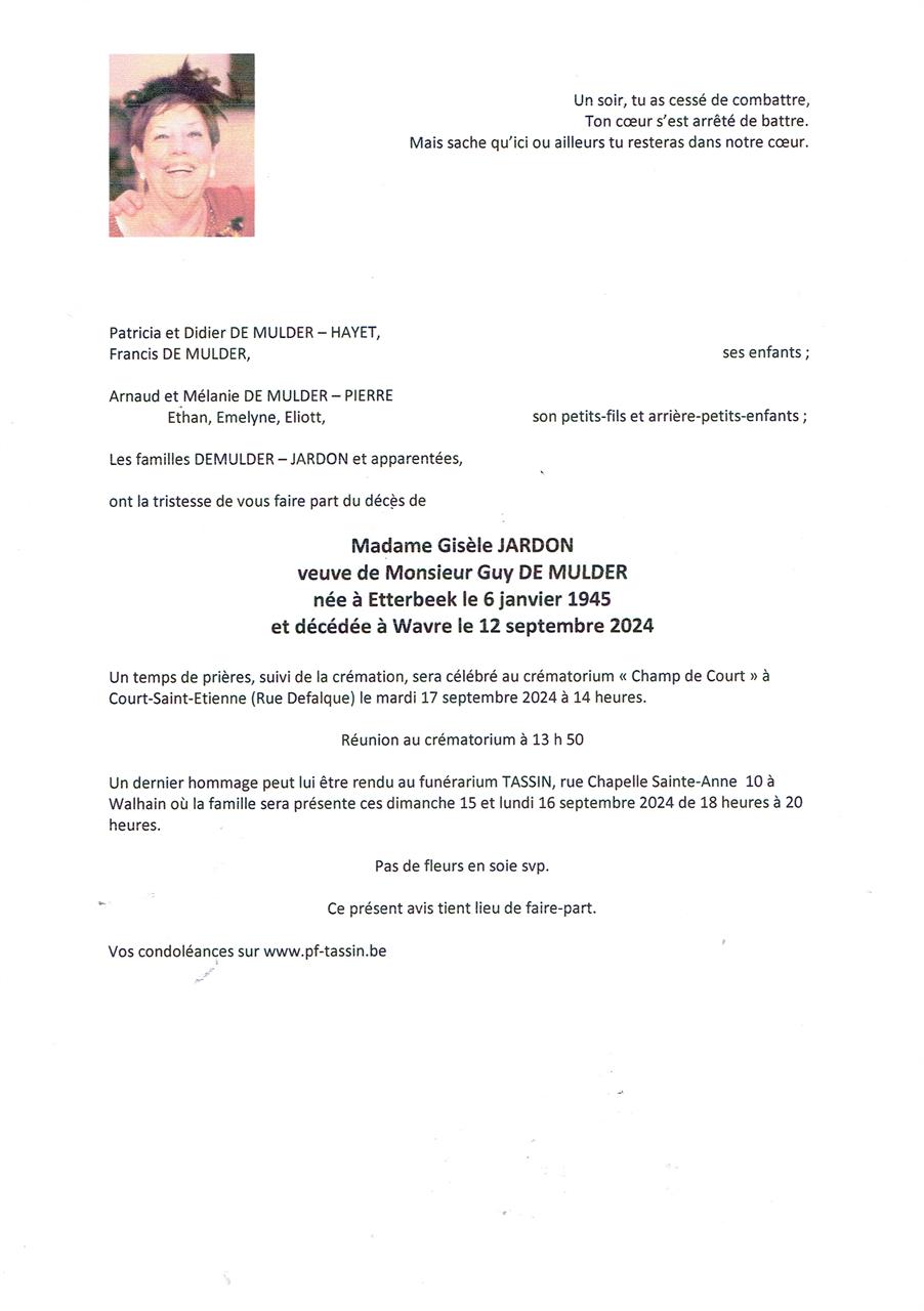 Madame Gisèle DE MULDER geboren JARDON