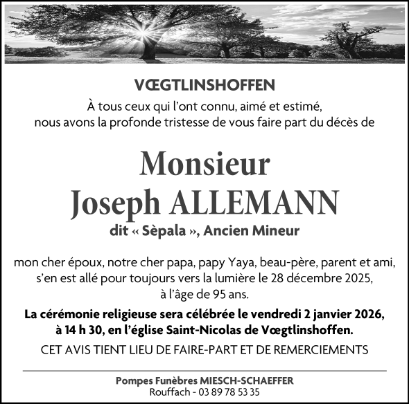 Décédé à Colmar (68000, France) le dimanche 28 décembre 2025 à l'âge de 95 ans