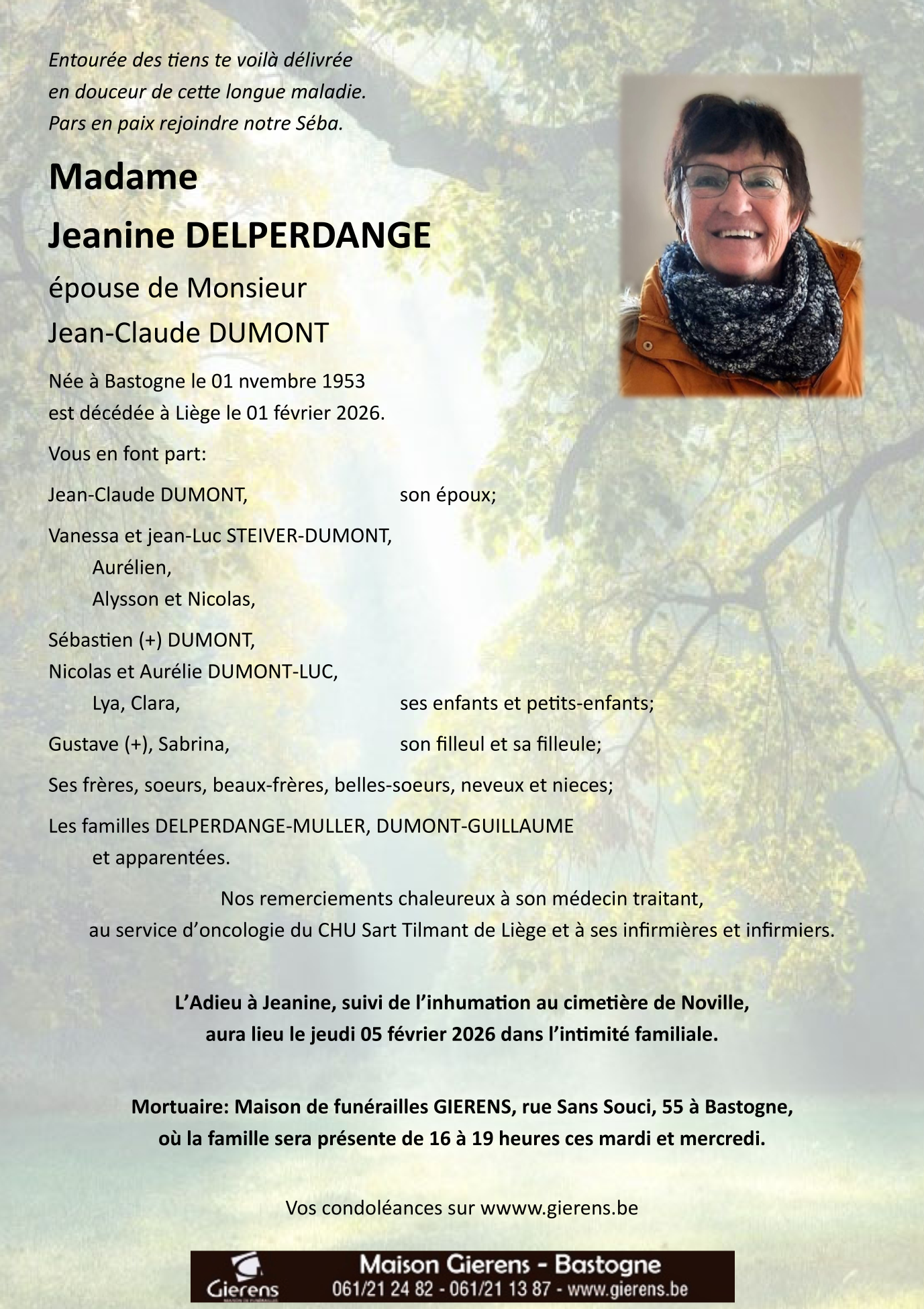Décédée à Liège (4000, Belgique) le dimanche 1 février 2026 à l'âge de 72 ans