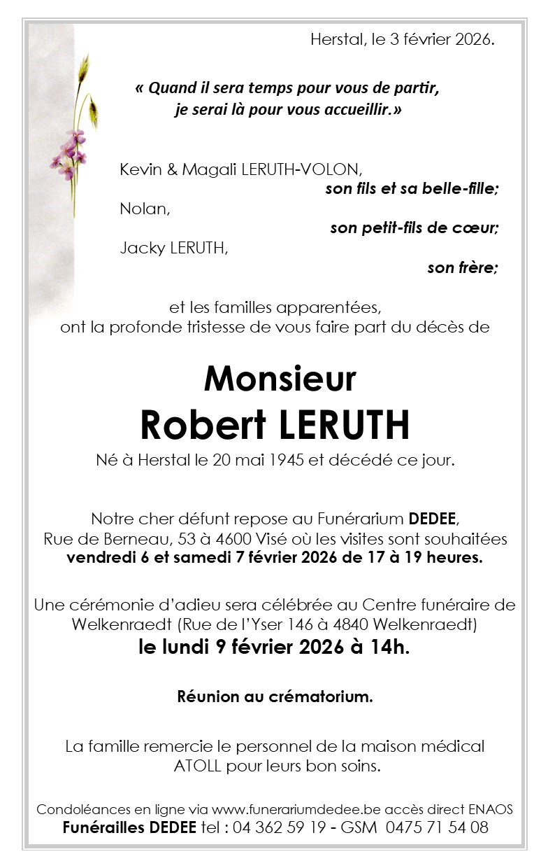 Décédé à Herstal (4040, Belgique) le mardi 3 février 2026 à l'âge de 80 ans