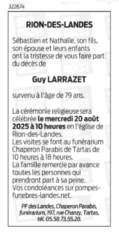 Décédé à Dax (40100, France) le vendredi 15 août 2025 à l'âge de 79 ans