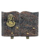 Plaque en granit en forme de livre ( 30x20 ) bronze Christ 2 inscriptions
