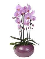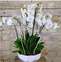 Orchidée en fleurs 3 branches en cache pot - Taille : 60 / 65 cm - Tonalité au choix : Blanc ou Rose ou Coloré