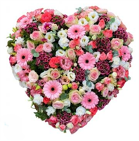 Superbe coeur de fleurs de saison pour une éternelle déclaration d’amour -Taille L : 80 /85 cm - Ruban inclus avec 50 caractères max - Tonalité au choix : Blanc/Vert ou Blanc/Parme ou Rose/Fuchsia ou Pastel ou Coloré -