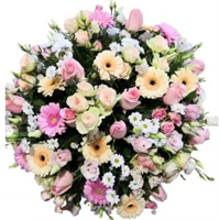 Photo non contractuelle | Raquette pastel Délicate raquette de fleurs de saison pastel - Env. 70 / 75 cm - Ruban inclus avec 50 caractères max -