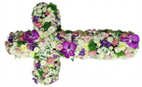 Photo non contractuelle | Croix pastel Superbe croix à base de fleurs de saison pastel - Env. 75 x 50 cm - Ruban inclus avec 50 caractères max -