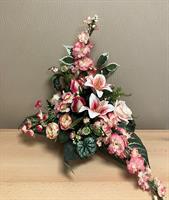 Bouquet lesté pour éviter la prise au vent Fleurs roses Hauteur pot + fleurs 50cm