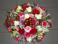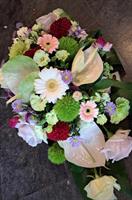 bloemstuk in zijden bloemen in combinatie met de bloemen van de familie