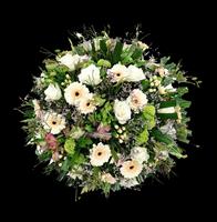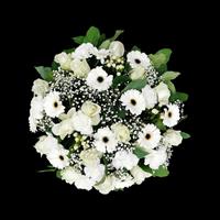 Photo for illustration purposes only | Bouquet rond blanc Bouquet rond blanc de fleurs de saison avec feuillage - Diamètre 40 cm