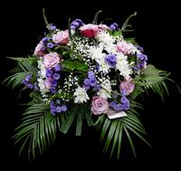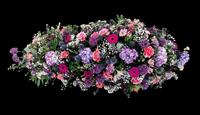 Photo for illustration purposes only | Dessus de cercueil mauve Dessus de cercueil de fleurs de saison, tonalité mauve - Longueur 120 cm