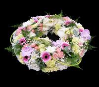Photo for illustration purposes only | Couronne pastel Couronne pastel de fleurs de saison - Diamètre 60 cm