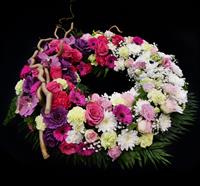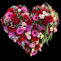 Photo for illustration purposes only | Cœur coloré fuschia Cœur de fleurs de saison colorées, tonalités rouge, fuchsia et rose - Diamètre 45 cm