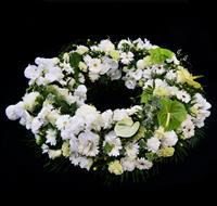 Photo for illustration purposes only | Couronne blanche Couronne blanche de fleurs de saison avec feuillage - Diamètre 60 cm