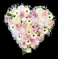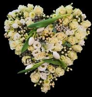 Photo for illustration purposes only | Cœur blanc Cœur de fleurs variées de tonalité blanche avec entrelacs de feuillage - Diamètre 45 cm