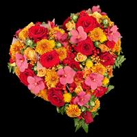 Photo for illustration purposes only | Cœur coloré rouge-orange Cœur de fleurs de saison colorées, tonalités rouge-orange - Diamètre 45 cm