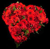 Photo for illustration purposes only | Cœur rouge Cœur de fleurs de saison rouges - Diamètre 45 cm
