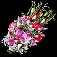 Photo for illustration purposes only | Gerbe exotique rose Gerbe de fleurs exotiques, tonalité rose - Hauteur 50 cm