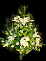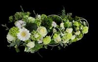 Photo for illustration purposes only | Dessus de cercueil graphique blanc et vert Dessus de cercueil graphique de fleurs de saison, tonalités blanche et verte - Longueur 90 cm
