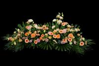 Photo for illustration purposes only | Devant de tombe pastel Devant de tombe de fleurs de saison en éventail, tonalité saumon pastel - Largeur 80 cm