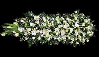Photo for illustration purposes only | Dessus de cercueil blanc Dessus de cercueil de fleurs de saison blanches - Longueur 120 cm